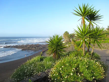 Kuten Teneriffalla yleensä, myös saaren pohjoisosassa sijaitsevan Puerto de la Cruzin rantaviiva on tulivuoresta purkautuneen tumman aineksen värjäämä ja rikkoma. Vaikka kaupunki muutoin kohoaa ylös rinteille, rantareitti suo mahdollisuuden kävellä suhteellisen tasaisessa maastossa.